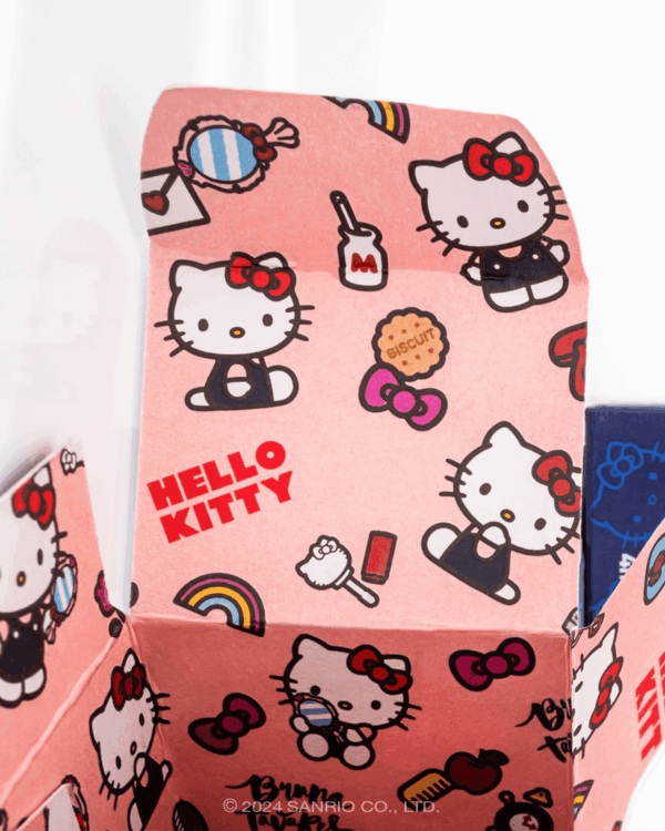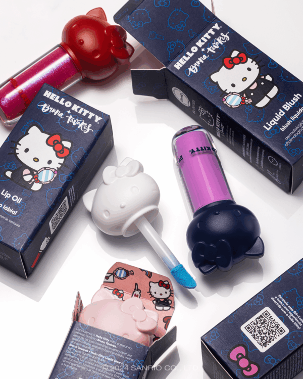 Bruna Tavares + Hello Kitty Lip Oil possui uma embalagem com design exclusivo, trazendo o molde da tampa personalizado com o rosto da Hello Kitty em relevo e em vermelho, uma das cores da personagem. Sua textura sérum é confortável e entrega cor e brilho aos lábios. A fórmula é enriquecida com Extrato de Pitaya, conhecido por sua ação umectante. Além disso, também conta com o Óleo de Semente de Uva, que é rico em moléculas que auxiliam a regeneração, promovendo brilho e maciez.