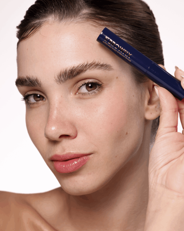 Uma máscara sérum para sobrancelhas com textura em gel que penteia e define os pelos.